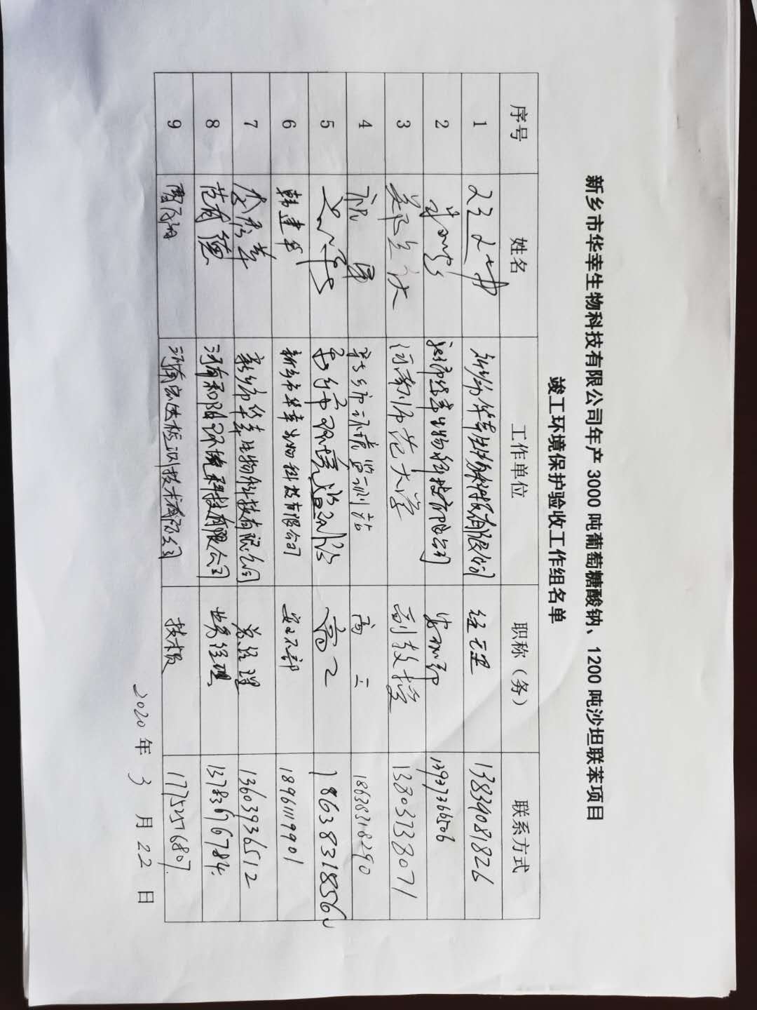 依據(jù)國務(wù)院第682號文頒布的新《建設(shè)項目環(huán)境保護(hù)管理條例》和原環(huán)境保護(hù)部國環(huán)規(guī)環(huán)評[2017]4號文公告的《建設(shè)項目竣工環(huán)境保護(hù)驗收暫行辦法》的相關(guān)要求,新鄉(xiāng)市華幸生物科技有限公司于2020年1月20日在新鄉(xiāng)市華幸生物科技有限公司廠區(qū)召開會議,對新鄉(xiāng)市華幸生物科技有限公司年產(chǎn)30000噸葡萄糖酸鈉、1200噸沙坦聯(lián)苯項目進(jìn)行竣工環(huán)境保護(hù)驗收。會議成立了驗收工作組,成員由建設(shè)單位新鄉(xiāng)市華幸生物科技有限公司、驗收檢測單位河南和陽環(huán)境科技有限公司、河南宏達(dá)檢測技術(shù)有限公司的代表及邀請的技術(shù)**組成(驗收工作組名單附后)。會前,驗收工作組成員對工程主要生產(chǎn)設(shè)施、環(huán)保設(shè)施進(jìn)行了現(xiàn)場檢查,會議聽取了建設(shè)單位關(guān)于項目建設(shè)情況及竣工環(huán)保工作的情況介紹、竣工環(huán)保驗收監(jiān)測報告編制單位關(guān)于驗收監(jiān)測工作技術(shù)匯報,查閱了竣工環(huán)保驗收監(jiān)測報告,核實了有關(guān)資料。經(jīng)過認(rèn)真審議與討論,形成如下驗收意見: